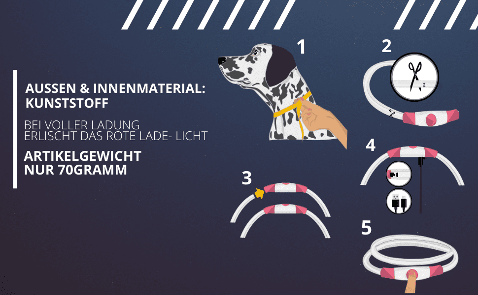 Ein USB-Ladekabel um das Halsband schnell zu laden wird mitgeliefert.