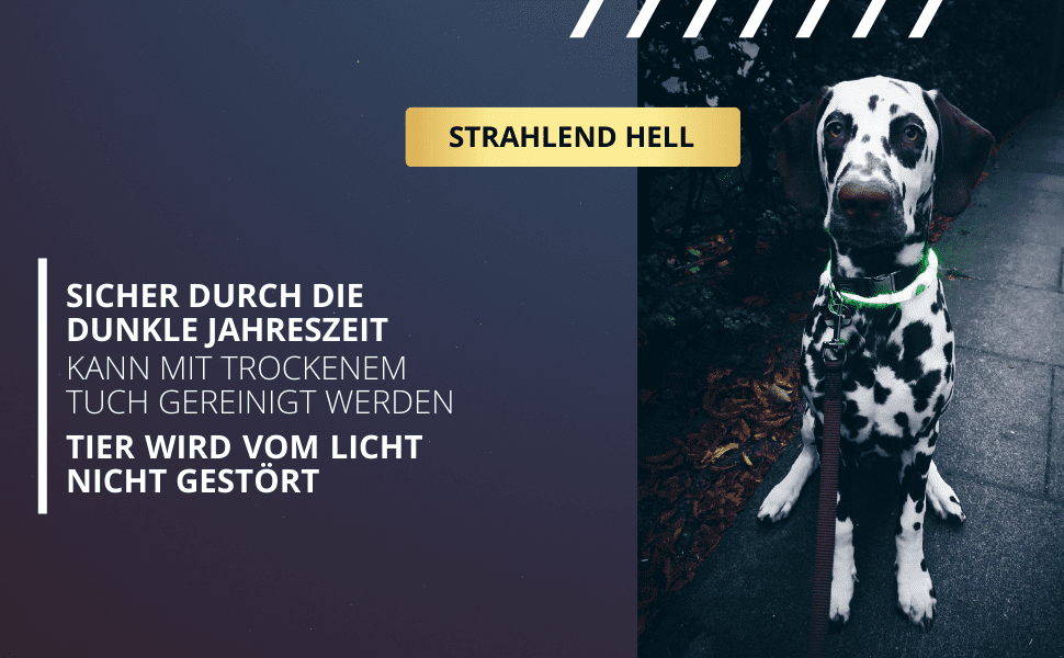 Ihr Vierbeiner kann auch im Dunkeln toben und ist immer leicht und weit zu erkennen.